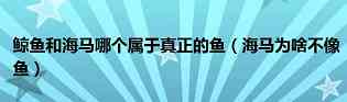 大家好,小农来为大家解答以上问题。鲸鱼和海马哪个属于真正的鱼,海马为啥不像鱼很多人还不知道,现在让我们一起来看看吧!