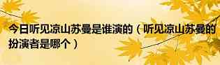 以上就是小编为大家介绍的今日听见凉山苏曼是谁演的的全部内容,如果大家还对相关的内容感兴趣,请持续关注上海建站网!