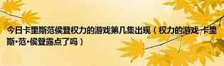 大家好,小吃来为大家解答以上问题。卡里斯范侯登权力的游戏第几集出现,权力的游戏 卡里斯·范·侯登露点了吗很多人还不知道,现在让我们一起来看看吧!
