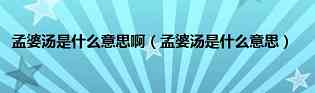 大家好,小双来为大家解答以上问题。孟婆汤是什么意思啊,孟婆汤是什么意思很多人还不知道,现在让我们一起来看看吧!