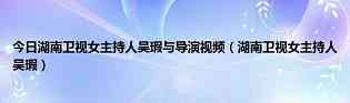 大家好,小良来为大家解答以上问题。湖南卫视女主持人吴瑕与导演视频,湖南卫视女主持人吴瑕很多人还不知道,现在让我们一起来看看吧!