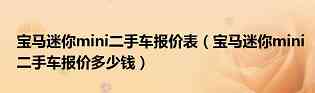 大家好,小雷来为大家解答以上问题。宝马迷你mini二手车报价表,宝马迷你mini二手车报价多少钱很多人还不知道,现在让我们一起来看看吧!