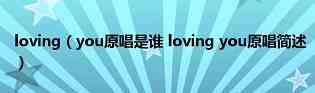大家好,小美来为大家解答以上问题。loving,you原唱是谁 loving you原唱简述很多人还不知道,现在让我们一起来看看吧!