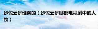 大家好,小美来为大家解答以上问题。步惊云是谁演的,步惊云是哪部电视剧中的人物很多人还不知道,现在让我们一起来看看吧!