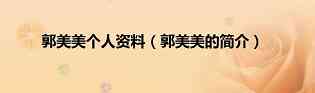 大家好,小美来为大家解答以上问题。郭美美个人资料,郭美美的简介很多人还不知道,现在让我们一起来看看吧!