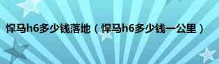 大家好,小雷来为大家解答以上问题。悍马h6多少钱落地,悍马h6多少钱一公里很多人还不知道,现在让我们一起来看看吧!