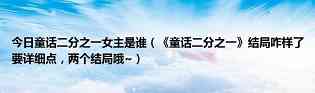 大家好,小吃来为大家解答以上问题。童话二分之一女主是谁,《童话二分之一》结局咋样了要详细点,两个结局哦~很多人还不知道,现在让我们一起来看看吧!