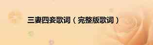 大家好,小美来为大家解答以上问题。三妻四妾歌词,完整版歌词很多人还不知道,现在让我们一起来看看吧!