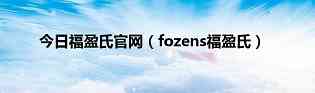 大家好,小良来为大家解答以上问题。福盈氏官网,fozens福盈氏很多人还不知道,现在让我们一起来看看吧!