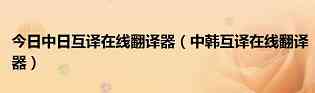 今日中日互译在线翻译器