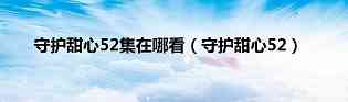 大家好,小双来为大家解答以上问题。守护甜心52集在哪看,守护甜心52很多人还不知道,现在让我们一起来看看吧!