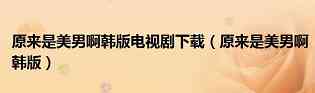 原来是美男啊韩版电视剧下载