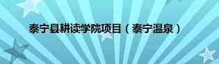大家好,小双来为大家解答以上问题。泰宁县耕读学院项目,泰宁温泉很多人还不知道,现在让我们一起来看看吧!