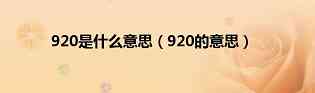 以上就是小编为大家介绍的920是什么意思的全部内容,如果大家还对相关的内容感兴趣,请持续关注上海建站网!