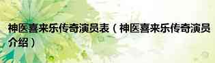 大家好,小农来为大家解答以上问题。神医喜来乐传奇演员表,神医喜来乐传奇演员介绍很多人还不知道,现在让我们一起来看看吧!