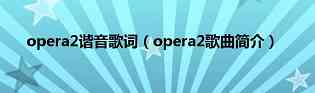 大家好,小农来为大家解答以上问题。opera2谐音歌词,opera2歌曲简介很多人还不知道,现在让我们一起来看看吧!