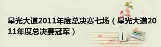 大家好,小双来为大家解答以上问题。星光大道2011年度总决赛七场,星光大道2011年度总决赛冠军很多人还不知道,现在让我们一起来看看吧!