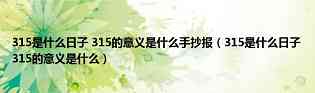 大家好,精选小编来为大家解答以上问题。315是什么日子 315的意义是什么手抄报,315是什么日子 315的意义是什么很多人还不知道,现在让我们一起来看看吧!