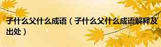 大家好,成成来为大家解答以上问题。子什么父什么成语,子什么父什么成语解释及出处很多人还不知道,现在让我们一起来看看吧!