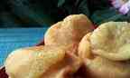 5、再把长条切成若干个的小剂子,把剂子用手捏成中间厚,周边薄的圆形面皮,用小勺舀一勺糖馅,放在面皮上。